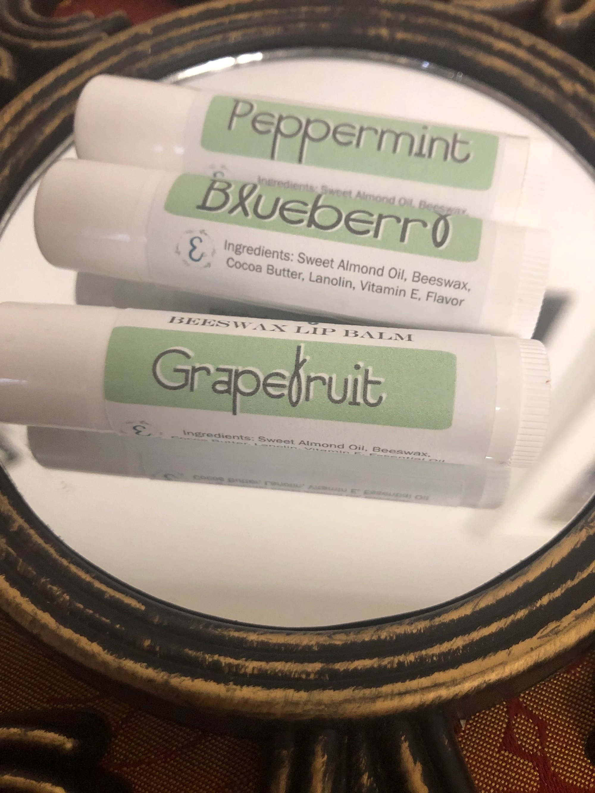 Ingredients: Beeswax, cocoa butter, sweet almond oil, vitamin E, lanolin, essential oils or flavor.