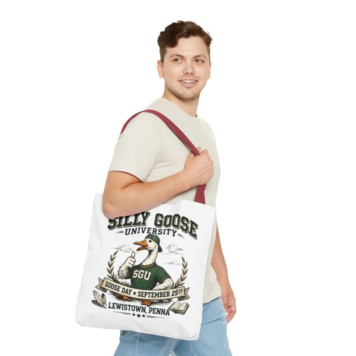 Silly Goose University Tote Bag — 'Goose Day • September 29th' College-Style Canvas Tote